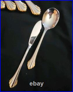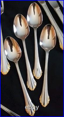 22 Pc Oneida Community Stainless Gold Accent Tip CLARETTE Service For 4