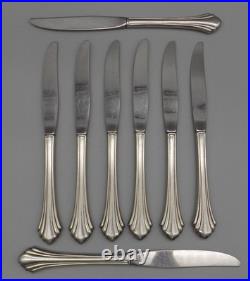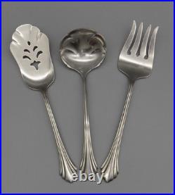 Please see the photos for more details of the condition. Please keep in mind that, unless otherwise noted, all of our vintage items have had a previous life. All items currently come from a smoke free home but we do have fur babies. These measure as follows: knives - 9", salad fork - 6 ¾", dinner fork - 7 ¼", teaspoon - 6", soup spoon - 6 ¾", iced tea spoon - 7 ¼", seafood fork - 6. Serving pieces: spatula 8 ¼", meat fork 8 ¼" & ladle 7 ¼.