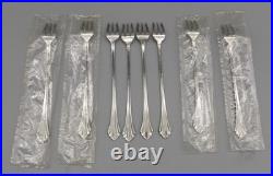 Please review all of the included pictures as they are considered part of the description. We strive to describe items as accurately as possible and provide lots of pictures so you know exactly what you are getting. These are all in nice used condition. These pieces, except for the 4 brand new seafood forks have been used and may have some scuffs, scratches and wear. I don't see anything I would call damage.