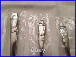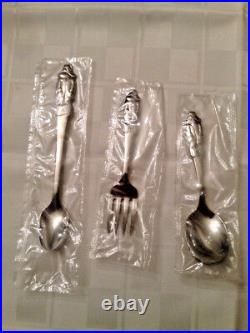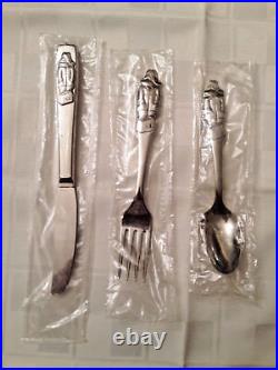 Vintage 6 piece Oneida Stainless Youth/ Infant/ Toddler Silverware/ Flatware Set. Includes:1 Youth Knife: 6 3/4" long, 1 Youth Fork: 5 3/4" long, 1 Youth Spoon: 5 14" long, 1 Infant Feeding Spoon: 5 1/2" long, 1 Toddler Fork: 4 5/16" long, 1 Toddler Spoon: 4 3/8" long. This Set is Brand New and still enclosed in the original cellophane packages.
