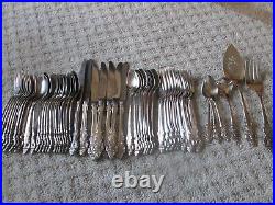 3 service pieces (relish spoon, Slotted Pie Server, Large Fork). 10 long handle tea spoons. 60 pc total as pictured.