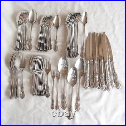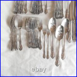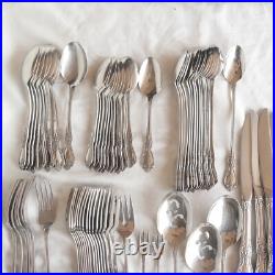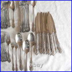 This is a very nice top quality stainless flatware set by Oneida in the "Kennett Square" Pattern. It will come exactly as shown. The set includes: (9) Soup spoons (12) Teaspoons (15) Iced tea spoons (8) Dinner forks (16) Salad forks (2) Cocktail forks (3) Serving spoons (9) Dinner knives.