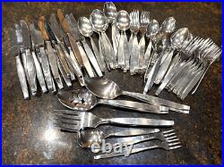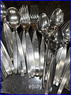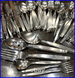 87 Pieces Oneida USA Frostfire Community Stainless Flatware Service For 8 Satin. Set weighs 7 lbs 5 ozs.