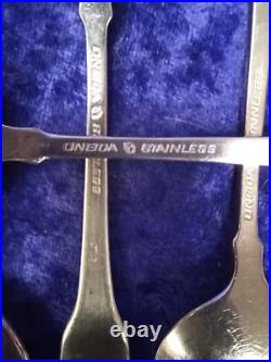 This is a pre-owned 50-piece lot of Vintage Oneida. Colonial Satin Cube Mark 18/8 Stainless Flatware. The lot consists of the following. The flatware is in good to very good condition, and shows the. Normal wear, small and light scratches from daily use and.