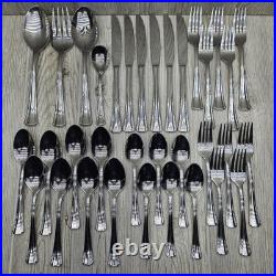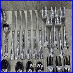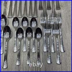 Elevate your dining experience with the Oneida BORDEAUX 34-piece flatware set, a collection that blends timeless design with modern durability. Crafted from high-quality stainless steel, each piece in this set is designed for both style and functionality. The set includes an array of pieces such as dinner forks, dinner knives, spoons, and knives, all finished with a sleek glossy look and a solid handle pattern that ensures a comfortable grip. The traditional style of this set brings a classic touch to any table setting, while the silver color adds a versatile sparkle that complements any dinnerware. For convenience, this collection is dishwasher safe and reusable, making it as practical as it is elegant.