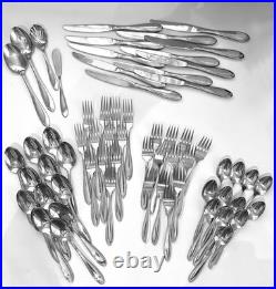 Up for sale is a large set of stainless flatware in the Camber Cresta pattern by Oneida. Included pieces are as follows. Marked as shown in the images and in lightly used preowned condition, very little wear and still bright. Thanks for looking and good luck!