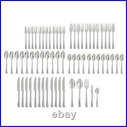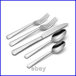 Built to last a lifetime, the finest metals mean maximum durability and rust resistance. The result is luxury you can hold. INCLUDES: (12) Dinner Knives, (12) Dinner Forks, (12) Salad Forks, (12) Dinner Spoons and (12) Teaspoons (1) Serving Spoon, (1) Pierced Serving Spoon, (1) Sugar Spoon, (1) Butter Knife and (1) Serving Fork MODERN DESIGN: Chroma takes things to another level.Layered, deep, and heavy with beveled edges that will ensure compliments on your table for years to come. HIGHEST QUALITY: What distinguishes silverware to the touch? This expertly crafted pattern is mirror finished and heavy in the hand.
