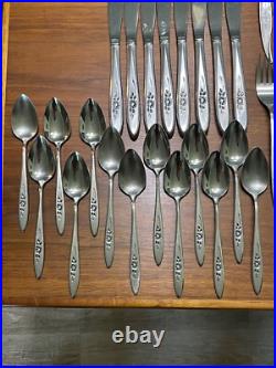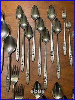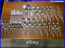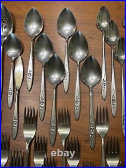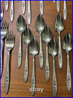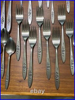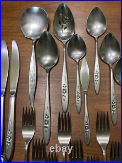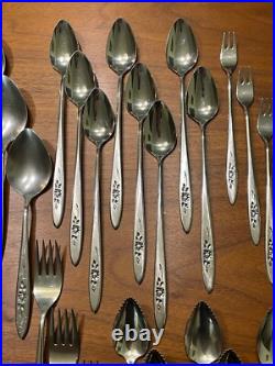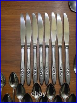 Oneida Community Stainless Flatware Rose Shadow 63 Pieces plus 8 Ice Tea Spoons