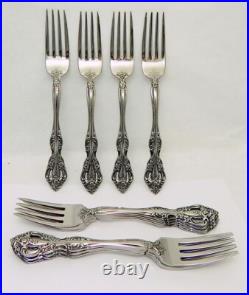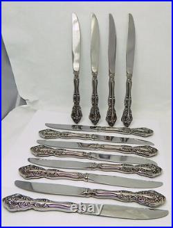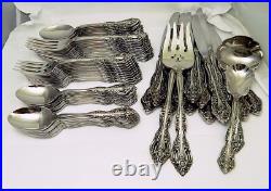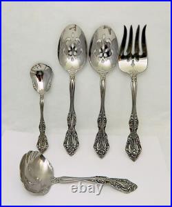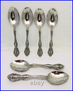 This listing is for 71 pieces of stainless flatware in the Michelangelo pattern by Oneida. All the pieces are marked Oneida cube Stainless except 1 dinner fork which is marked Oneida USA, and the knives which are unmarked. Condition: Pre-owned, very good overall, with a glossy mirror finish and light to minimal surface marks.