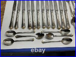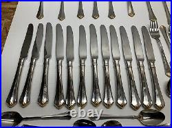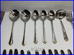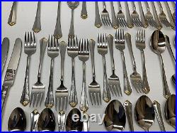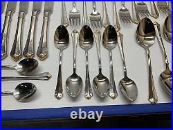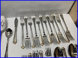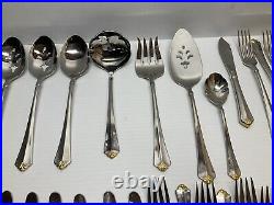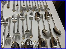 These flatware will need cleaned before using, please see pictures for best details. Crafted with the finest attention to detail, the Oneida Heirloom Golden Juilliard Stainless Flatware Set is a testament to timeless elegance and quality. This 70-piece collection, enough to serve a dinner party of 12, features a glossy finish that reflects the light, adding a touch of sophistication to any table setting.