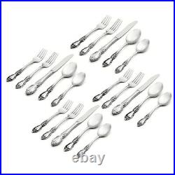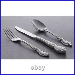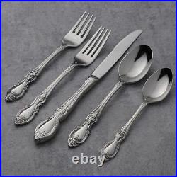 Oneida Louisiana 20 Piece Fine Flatware Set, Service for 4, 18/8 Stainless Steel. INCLUDES: This Oneida silverware set contains (4) dinner knives, (4) dinner forks, (4) salad forks, (4) dinner spoons and (4) teaspoons. This silverware set's qualities are based off of history's cornerstones for measuring beauty. This silverware set will last through all dinners and dishwashers. Item Dimension: H11.2 L3.6 W9. Patterns for a Lifetime Program. Premium quality 18/10 stainless steel. The dinner fork is the universal tableware piece for entrees.Can also be used as a dessert fork. Item Dimension: H0.25 L7.25 W1.