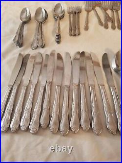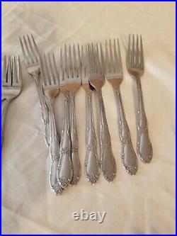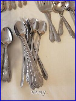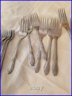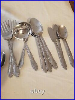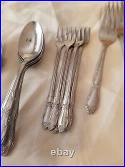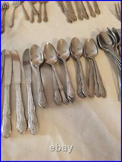 Oneida Fenway or Daydream flatware lot. 105 pieces in good pre owned condition. 14 long handle ice tea spoons.