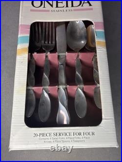 Oneida Stainless Silverware 20 Piece Service For Four NOS. Some of the box is bent in some places, packaging wear:: never used.. See pictures for more details.