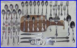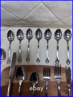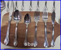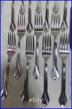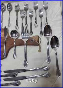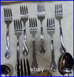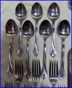 The Oneida Tribeca Flatware 45-piece set is a traditional stainless steel flatware collection designed for serving 8 people. This set includes knives, forks, spoons, and a full serving set, all in a sleek silver color. Built by the trusted brand ONEIDA, this set features a classic design and durable stainless steel material for long-lasting use. Perfect for everyday dining or special occasions, the Oneida Tribeca Flatware set is a stylish and practical addition to any kitchen or dining table.