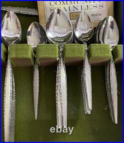 Vintage Oneida Community Stainless Venetia Pattern Flatware 65 pc & Case Minty