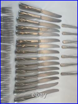 Vintage and discontinued- The Oneida OCEANIC Glossy Stainless Flatware is a sleek and stylish set of flatware designed for everyday use. Made from durable stainless steel with a glossy finish, this silver-colored flatware features a unique Oceanic pattern on the handles. The set is reusable and dishwasher safe, making it convenient and easy to care for. Perfect for adding a touch of elegance to any kitchen or dining table, these high-quality pieces from the trusted brand ONEIDA are a must-have for any home chef.