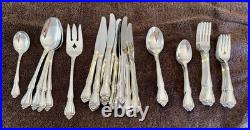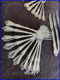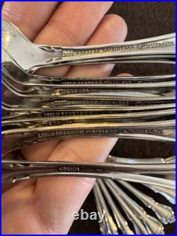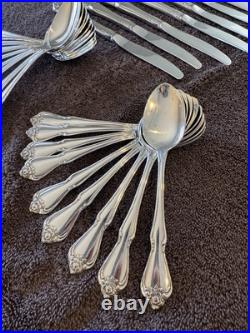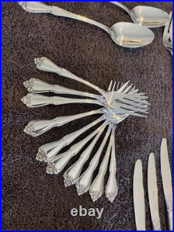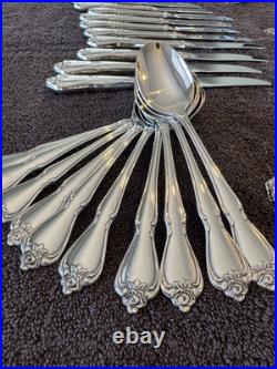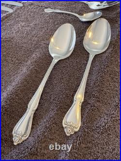 Only SOME may have been slightly used but most is still brand new condition! Minimal surface scratching and or wear/tear. 1 small serving spoon/drizzle spoon. The vintage Oneida ARBOR ROSE TRUE ROSE 1881. Rogers Ltd flatware set includes 56 pieces in a traditional style with a floral handle pattern.